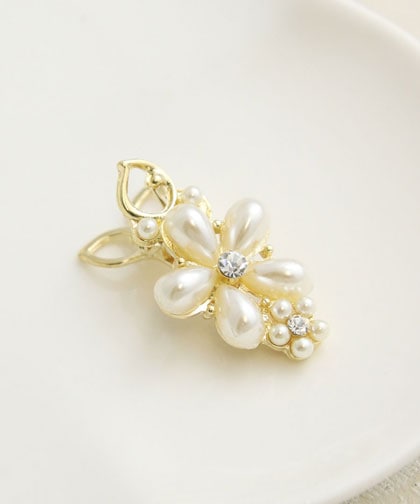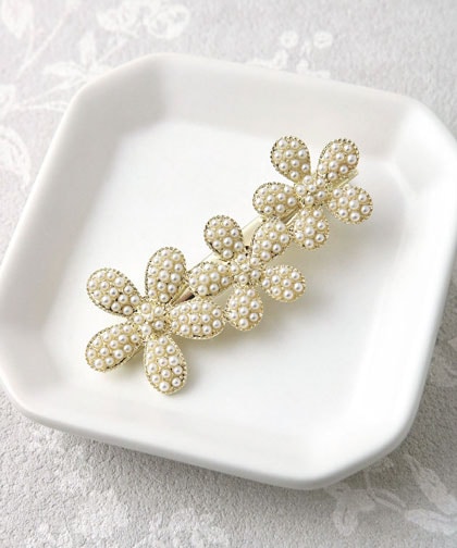 トップ > ヘアアクセサリー > ヘアピン > パヴェ風小粒パール リボンヘアクリップ H7960